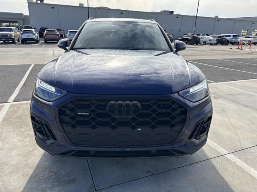 The exterior of this Q5 is dressed in a stunning Blue hue, complemented by the Black Optic Plus Package that adds a touch of sophistication with its sleek black accents and high-gloss elements. Step inside and you'll be greeted by a premium cabin outfitted with luxurious Leather Seating Surfaces, a Heated Steering Wheel, and a host of advanced technology features that will elevate your daily commute.